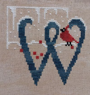 Great stitching so far! I love the W on its own with the hand-dyed thread and sprinkled in snow. Looking forward to seeing those framed pieces! :)
