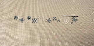 The only reason I could think I put it away for so long it's on linen and I really dislike linen but the color is beautiful of course. So I tried it again and it's not the end of the world. Not my preference but I didn't hate it as much as I used to. Since the stocking on the M block this one worked for 101 stitches...